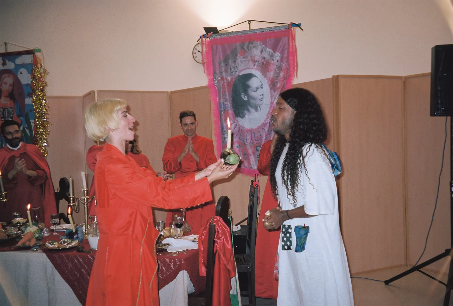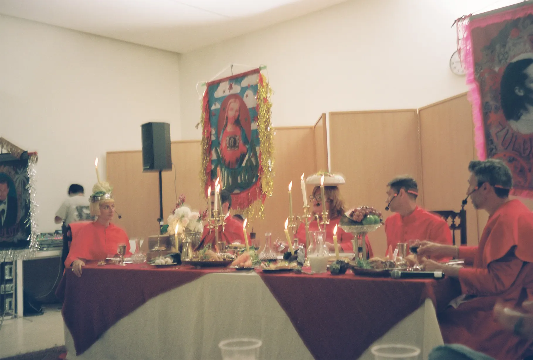 Intitulado “Queermess”, neste evento foi também apresentada a Ceia dos Cardeais, uma performance inédita dos Teatro Praga, onde os cardeais comensais foram espectadores de espectadores.