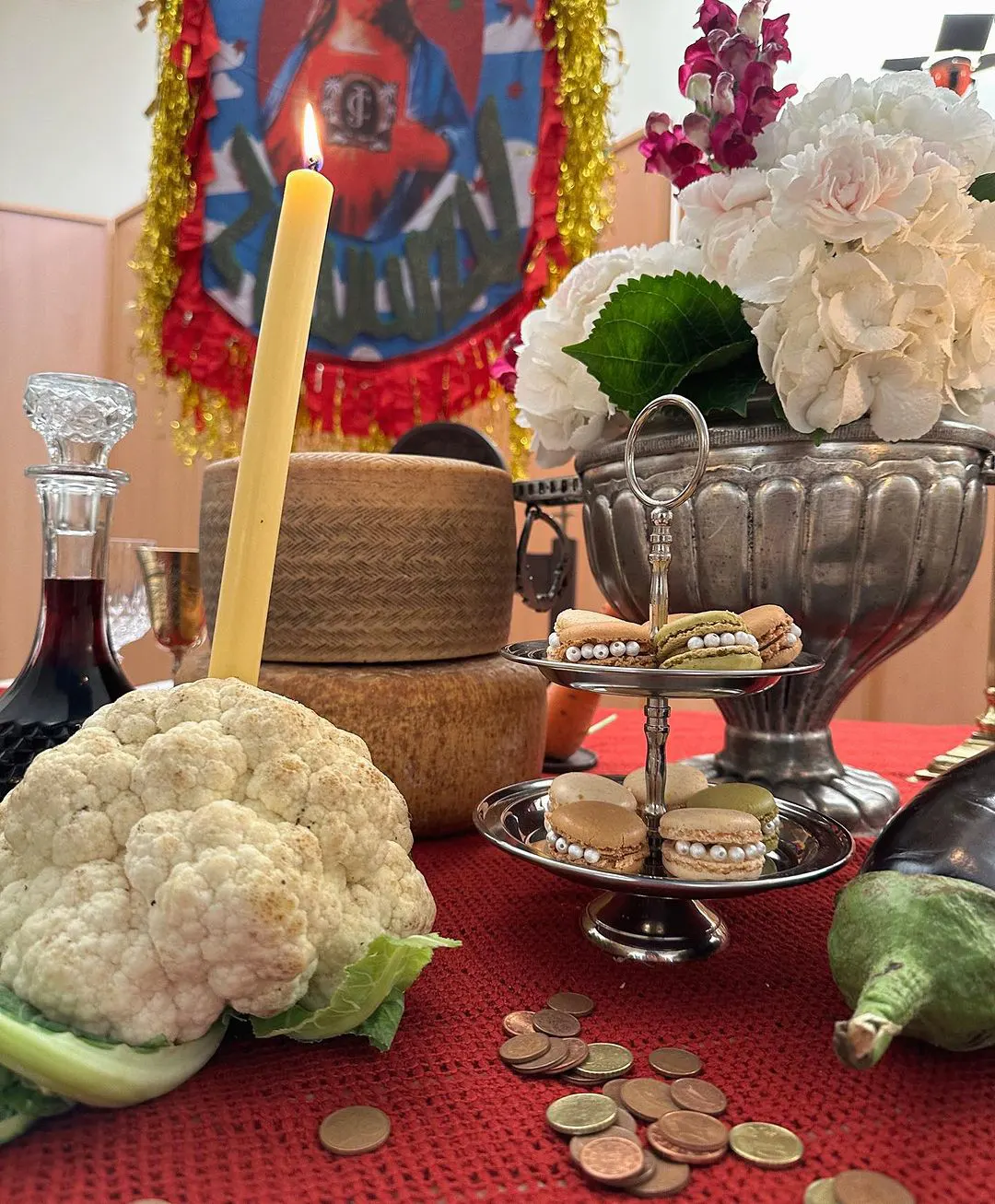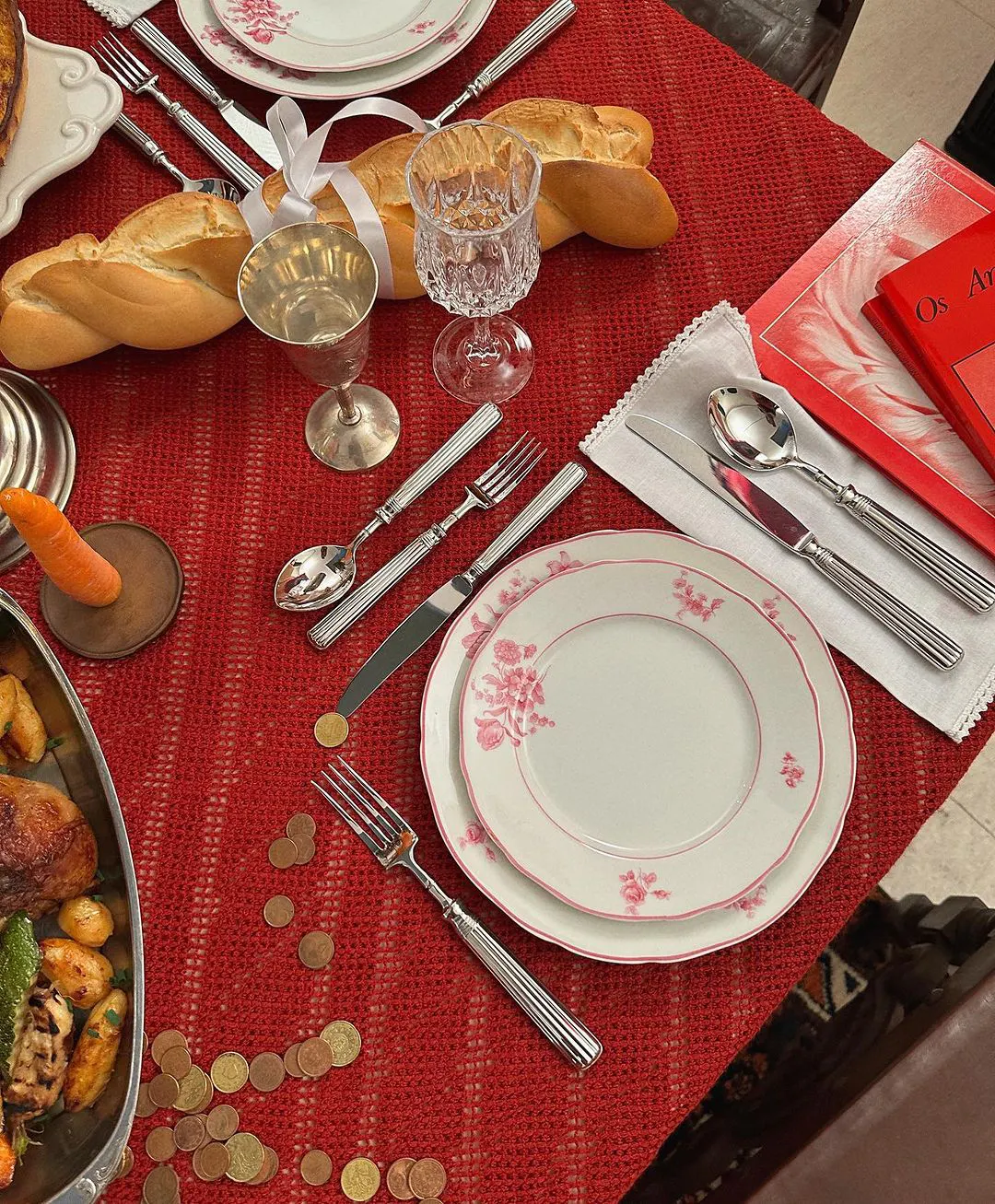 A mesa tinha de ter abundância de comida e acessórios que remetessem a época retratada. Convidamos a chef Maria José do @7gramaadetermura para confecionar alguns pratos típicos da época. Estava tudo uma delícia.